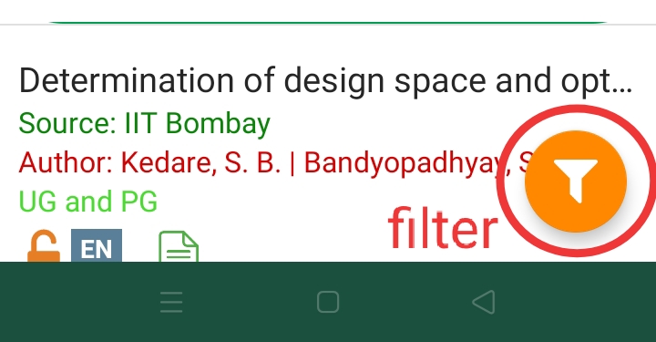Hey ! The one function that you must know about NDL that is the filter option . If you search for a machine Book then you filter your search from this bottom right filter button . When you tap on this filter button you can select author . Which author’s Book you want to read . Next is the education level . Means the topic that you want is related with which education level . Then , next is language . You can select the language which you want . Next is the learning resource type . It means that the resources which you want to prefer . In this learning you can select source of library which you want . you can select your content type & access restrictions also .