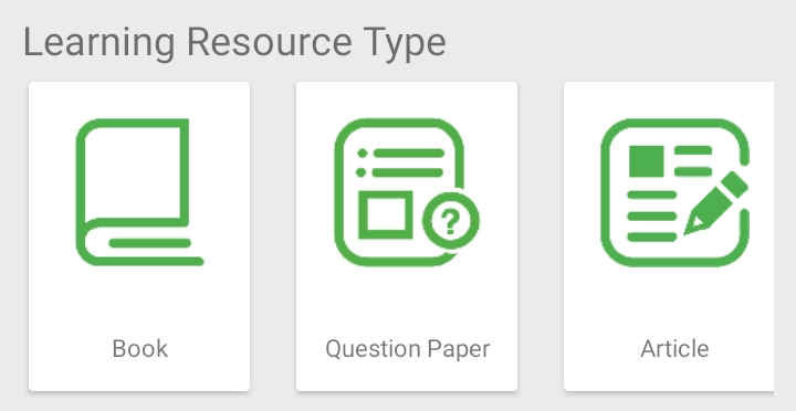 Then next is learning resource. Learning resource means which type of learning do you want to refer . You can refer books from here & also you can refer question paper , article , video lectures , audio lectures or thesis . By tapping on this earth shape button you can select your language . Here also you get the filter options .